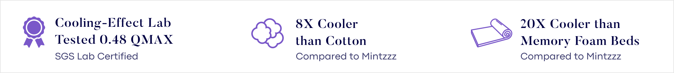 Mintzzz is Q-MAX 0.48 certified. Which means it is 20X cooler to the touch than memory foam, and 8X cooler than cotton.